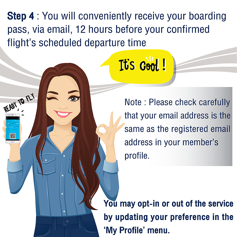 With the FlyerBonus Automated Check-in Service, eligible ticket holders will be automatically checked-in 12 hours prior to their flight’s scheduled departure time and for added convenience, e-Boarding passes will be emailed directly to the listed address in the member’s profile.