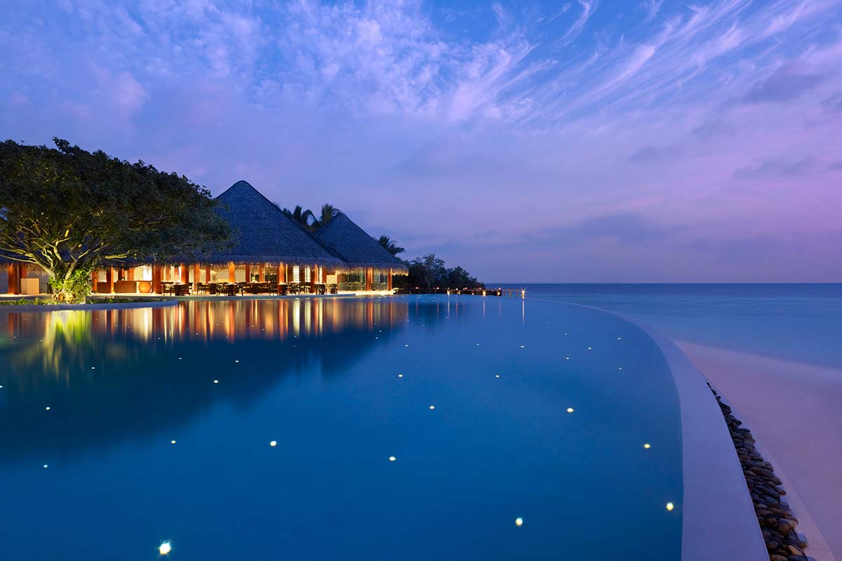 blends graceful Thai hospitality with the unparalleled luxury setting of destination Maldives. Encircled by white sandy beaches, a rich house reef and turquoise lagoon, our resort on Mudhdhoo Island is just 35 minutes by seaplane from the capital Malé and 10 minutes by speedboat from the new domestic airport in Baa Atoll.