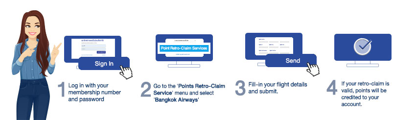 (Members can retrospectively claim FlyerBonus points on Bangkok Airways flights up to 180 days from the date of travel and must be in the applicable period according to this offer.)
