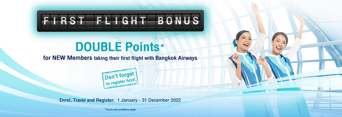 DOUBLE points are on offer for newly signed up members taking their first flight with Bangkok Airways who register for the promotion between 01 January and 31 December 2022.