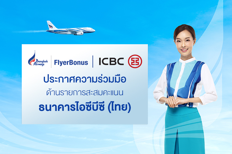 1 มิถุนายน 2565 - บริษัท การบินกรุงเทพ จำกัด (มหาชน) หรือ สายการบินบางกอกแอร์เวย์ส ร่วมกับธนาคารไอซีบีซี (ไทย) จำกัด (มหาชน) หรือ ธนาคารไอซีบีซี (ไทย) ประกาศความร่วมมือเป็นพันธมิตรด้านรายการสะสมคะแนนฟลายเออร์โบนัส มอบสิทธิประโยชน์ให้กับสมาชิกฟลายเออร์โบนัสที่ถือบัตรเครดิตธนาคารไอซีบีซี (ไทย)