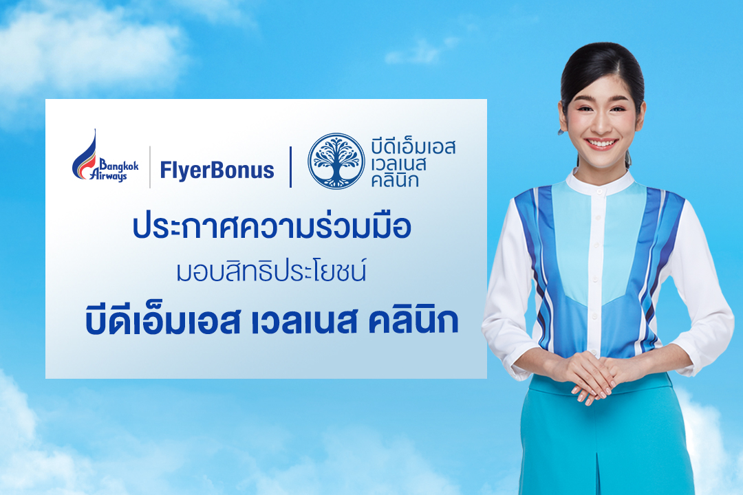1 สิงหาคม 2566 - รายการสะสมคะแนนฟลายเออร์โบนัส บริษัท การบินกรุงเทพ จำกัด (มหาชน) หรือ สายการบินบางกอกแอร์เวย์ส ร่วมกับพันธมิตรใหม่ ‘บีดีเอ็มเอส เวลเนส คลินิก’ มอบสิทธิประโยชน์ให้แก่สมาชิกฟลายเออร์โบนัส สามารถนำคะแนนสะสมฟลายเออร์โบนัสแลกเป็นรางวัลไลฟ์สไตล์เพื่อเข้ารับบริการด้านสุขภาพและความงาม เริ่มต้นที่ 14,000 คะแนน