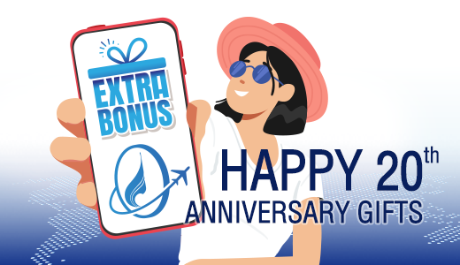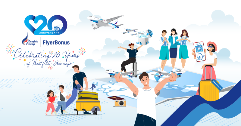 ในโอกาสครบรอบ 20 ปีของฟลายเออร์โบนัส เราขอขอบคุณสำหรับความไว้วางใจอย่างต่อเนื่อง และเพื่อเป็นการตอบแทน เราได้เตรียมสิทธิประโยชน์และรางวัลพิเศษมากมายตลอดปี เพื่อให้ทุกการเดินทางของคุณคุ้มค่าและน่าประทับใจกว่าที่เคย